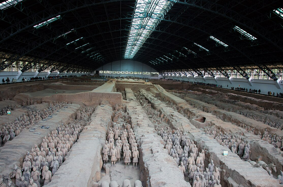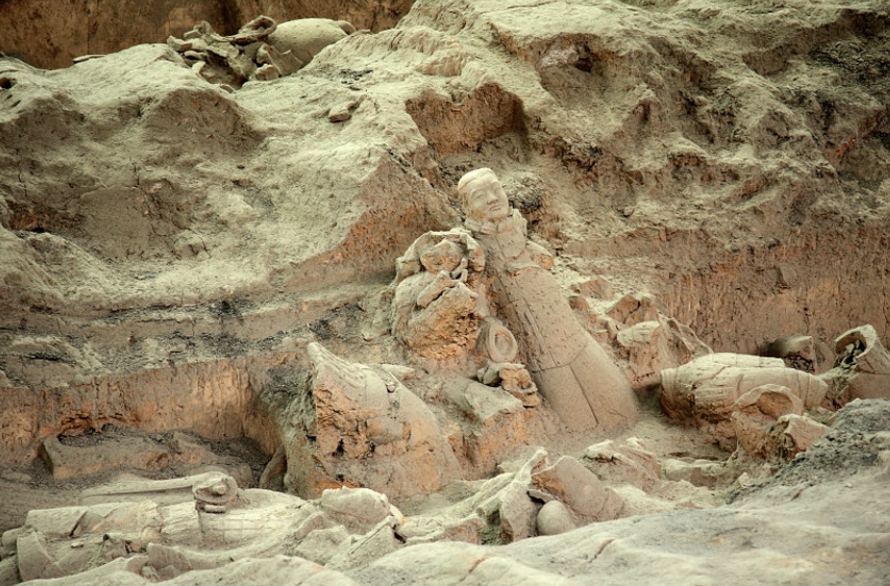 Arkeologlar, 6 yıllık bir araştırma sonucu 22.000 metrekarelik bir alanı kaplayan toplamda üç yeraltı çukuru buldu. Bu devasa alana sıkıştırılmış toprak duvarlarla ayrılmış tünellere veya odalara gömülü yaklaşık 8.000 kil asker ve attan oluşmuş ordu vardı. Bu heykellerden bazıları ayakta dururken bazıları ise çömelmişti. Atlar ise ya dörtnala koşuyor ya da koşumları takılı bekliyordu.